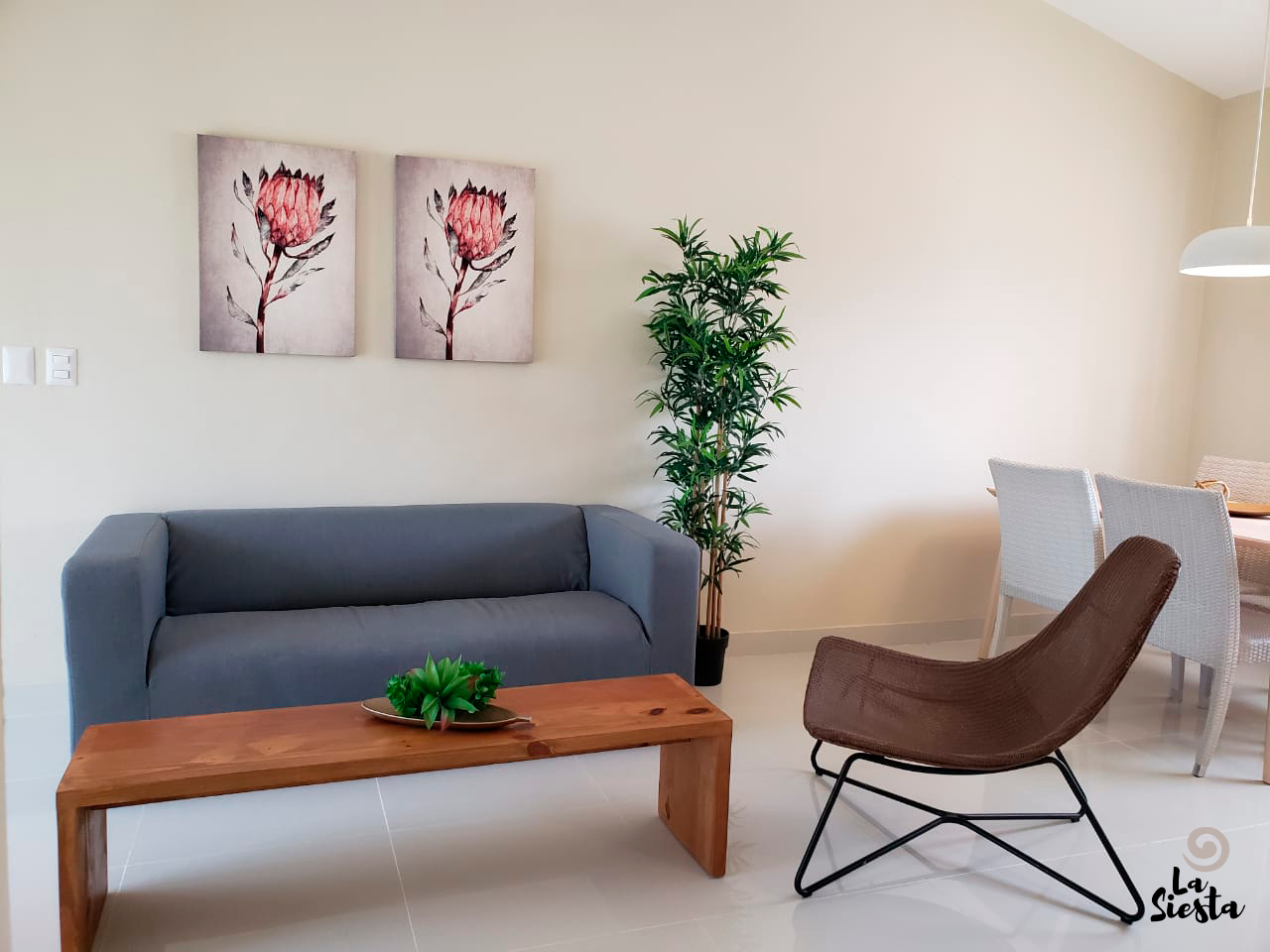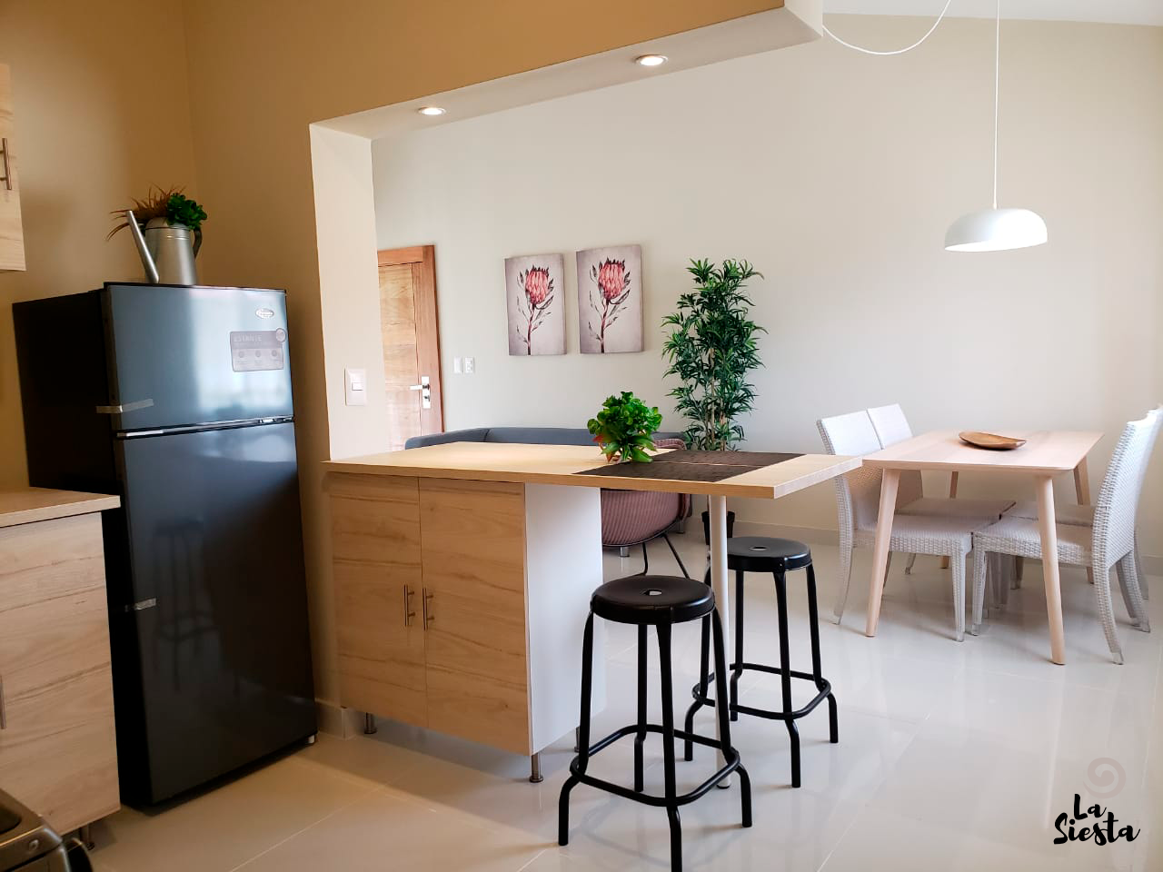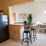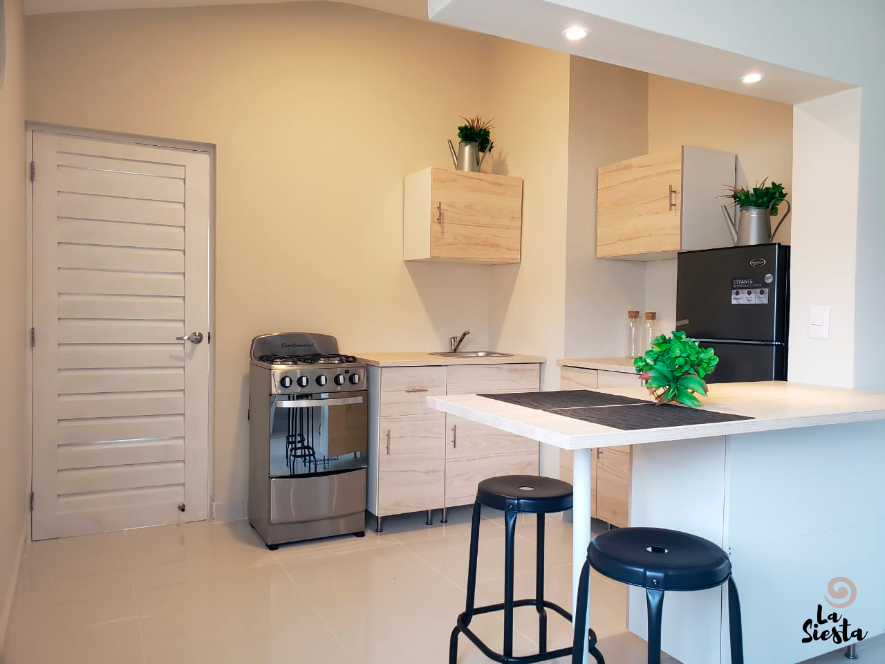 Apartamentos de 1, 2 o 3 habitaciones, con 1 o 2 baños, camas full,abanico en area de sala, aire ac en habitaciones, balcón, ventanas con cerramiento de seguridad. Cocina equipada, con nevera y estufa eléctrica. Televisión por cable.